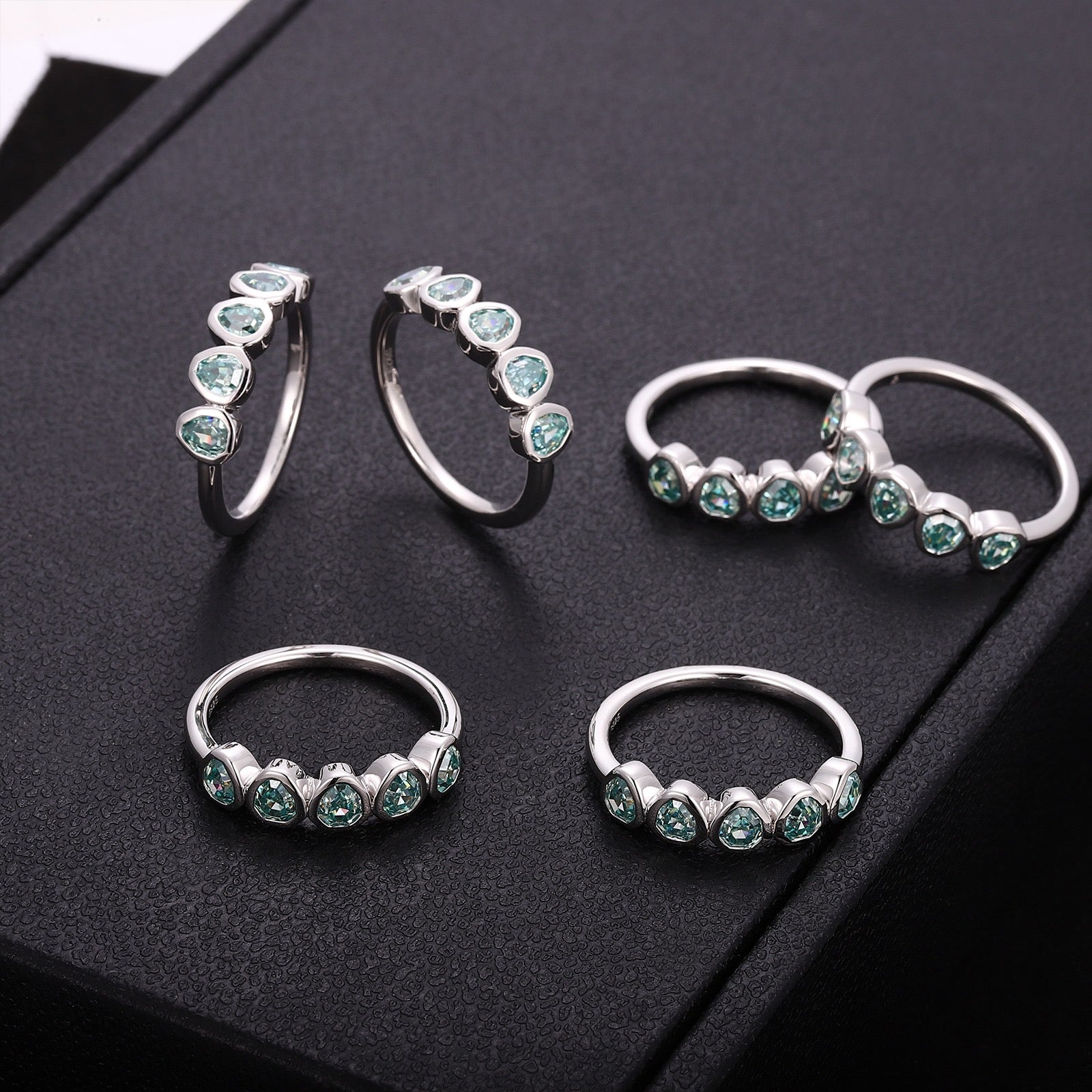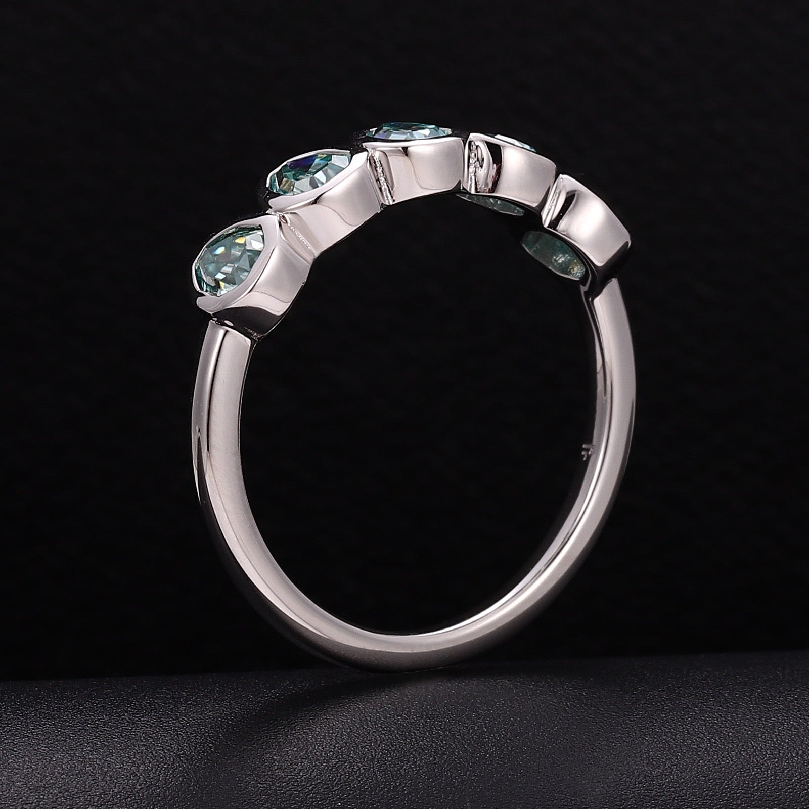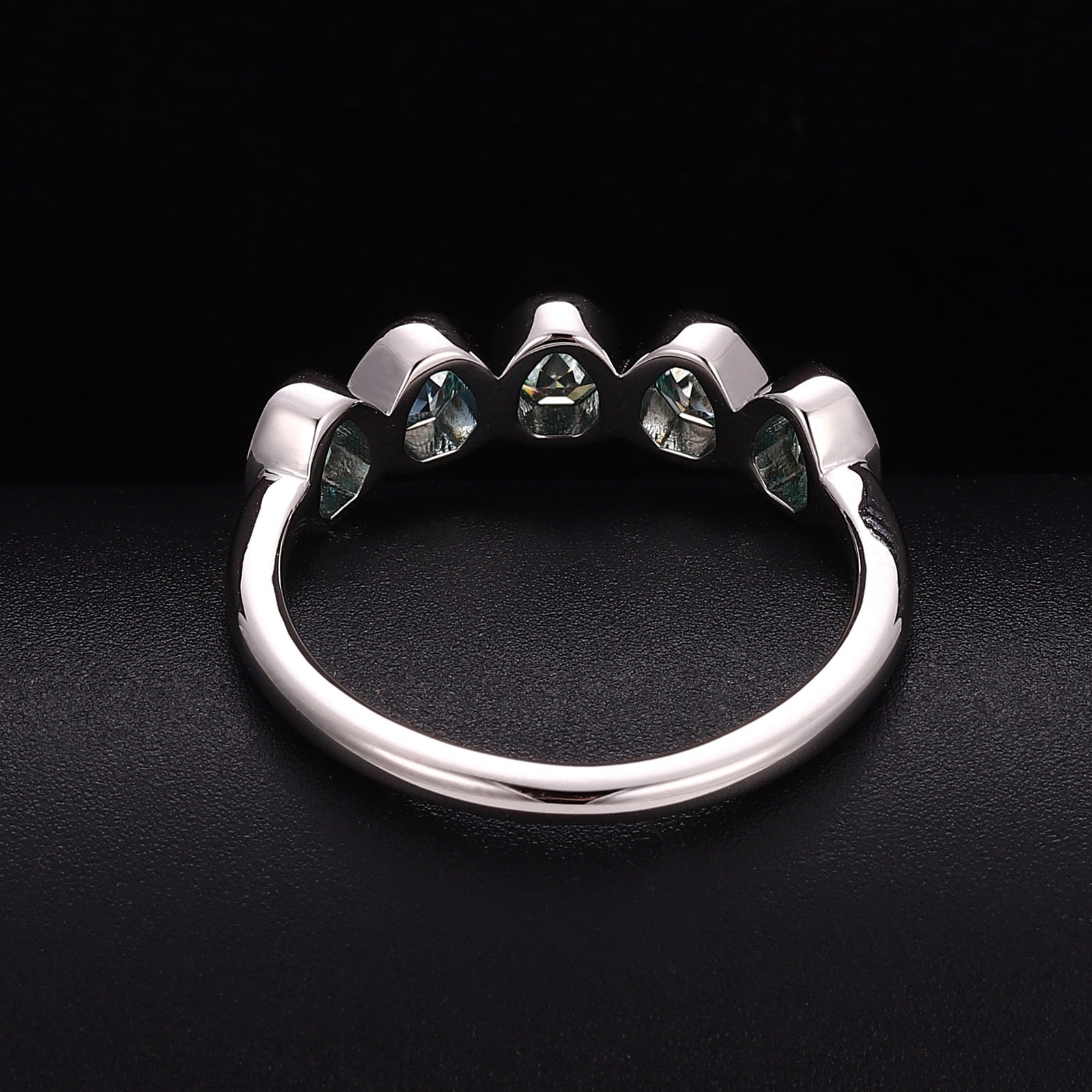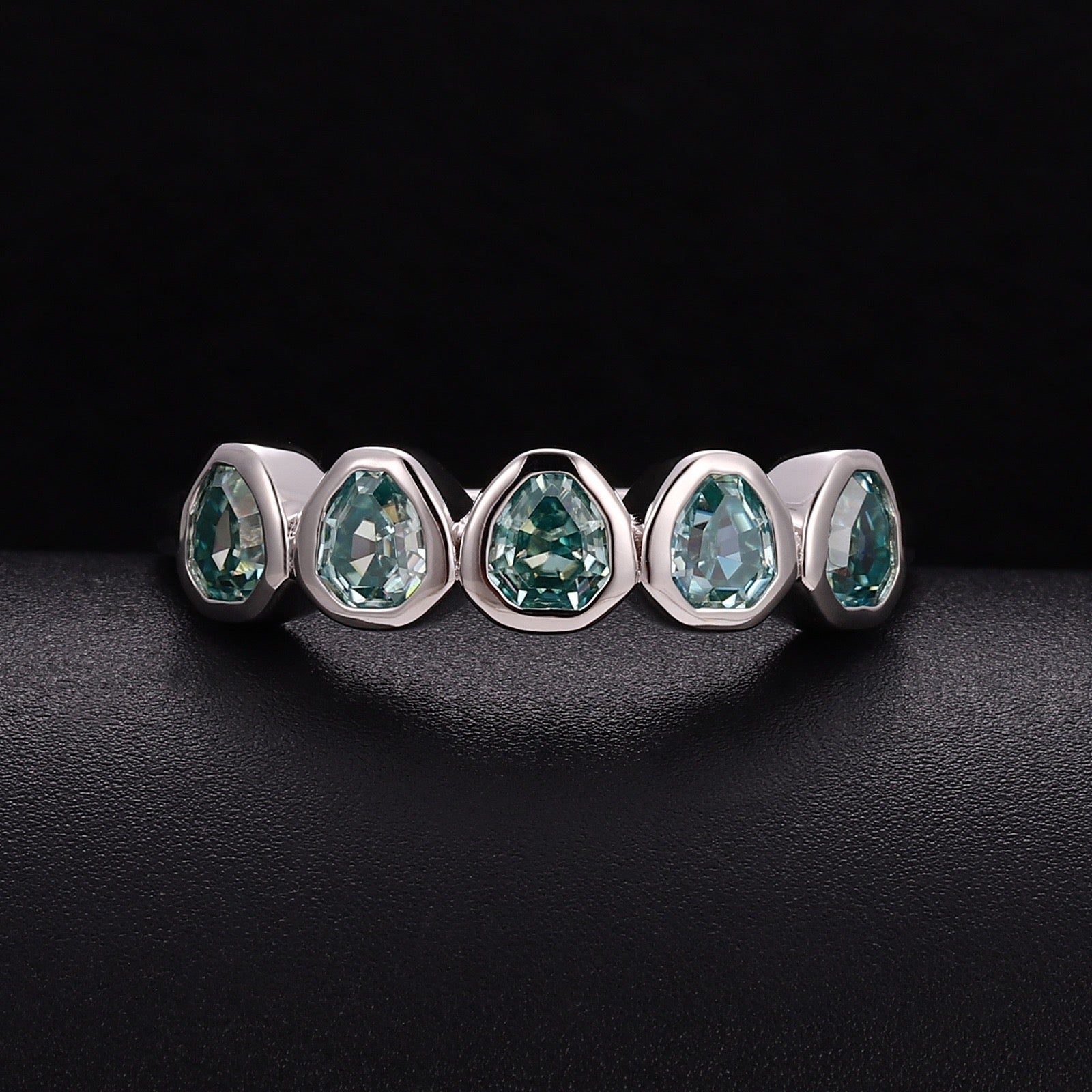 5 custom cut Blue/green Moissanite stones (Stone shade ranges from a light blue to a teal)